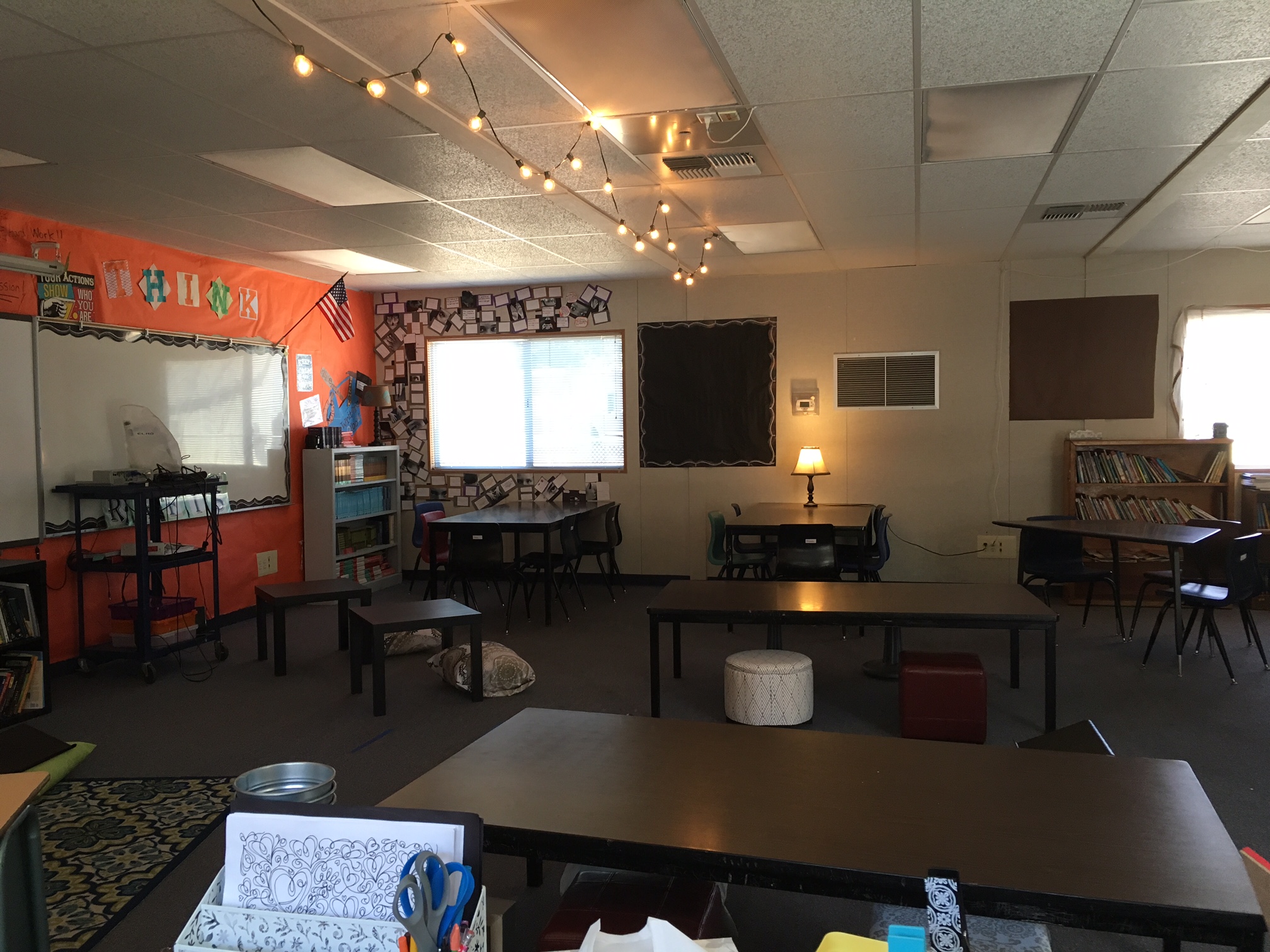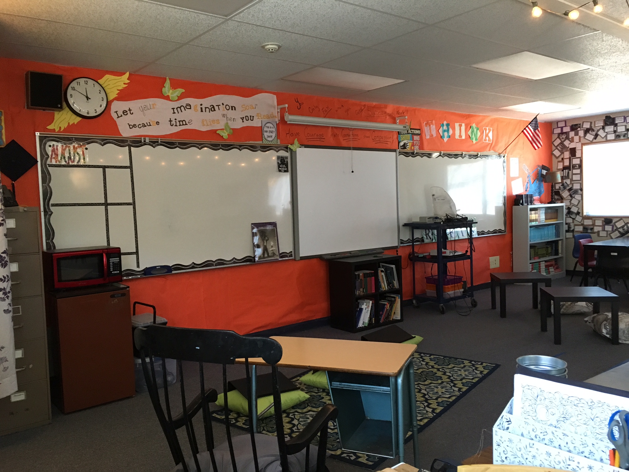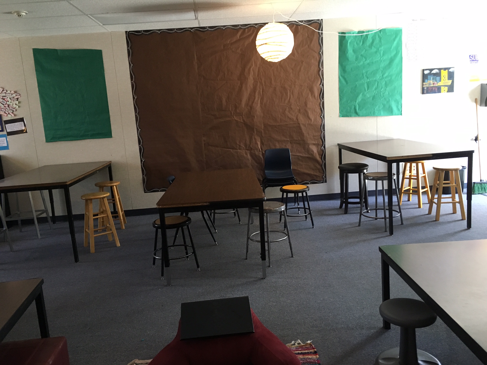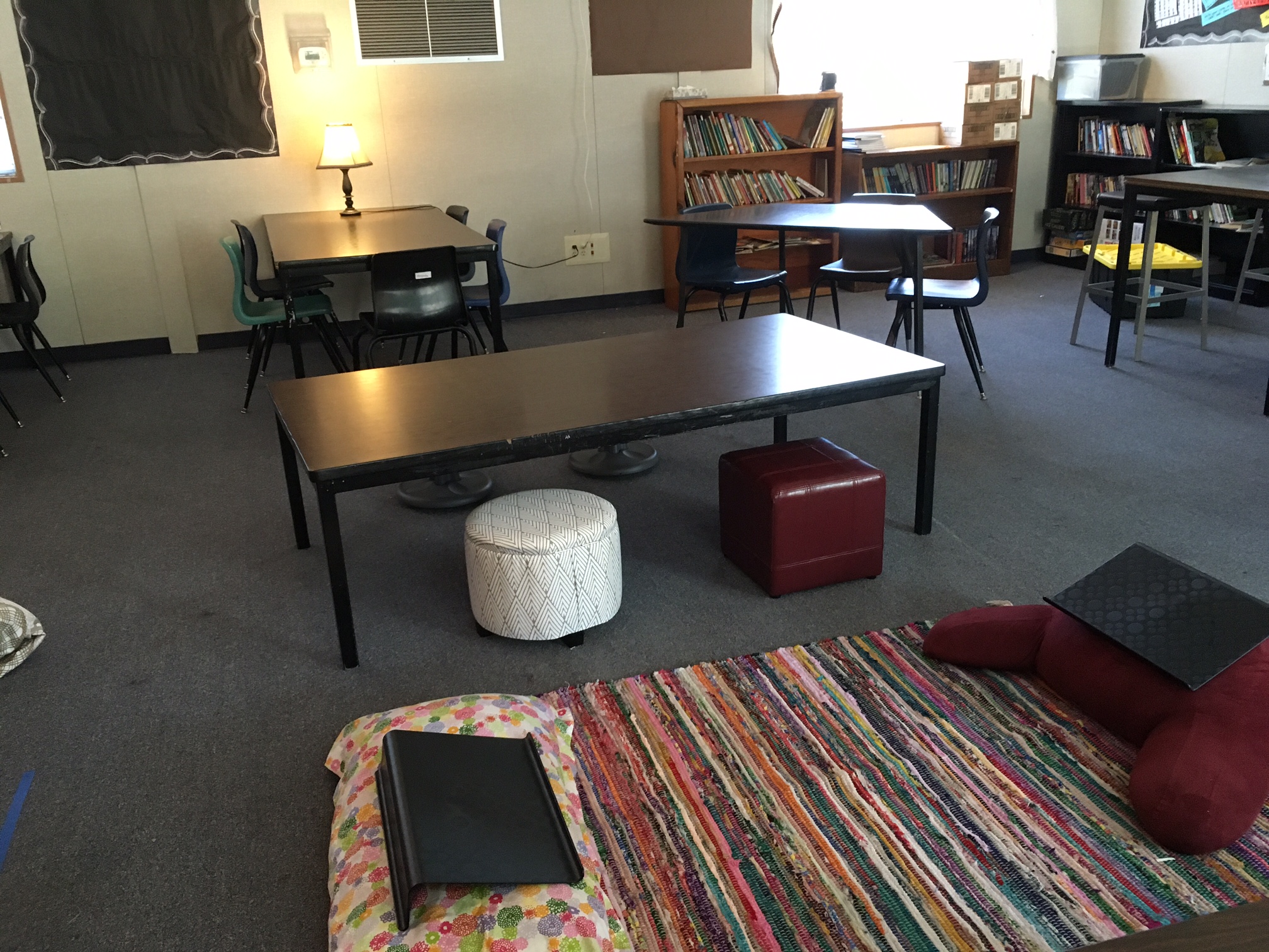 Continuing to venture toward my same teaching goals which are to provide to my students an education which encourages empathy and understanding, I have designed my classroom space to be more like a comfortable living room. I want my students to have compassion and creativity and I want to model that in my classroom and with my teaching – and honestly, I just to communicate to my students that they are human beings whose individual thoughts and ideas matter; I decided to create a classroom space which encourages students to be comfortable and choose seating and locations which feel appropriate to each of their learning style preferences (longest sentence ever and it’s probably not even punctuated correctly – It’s Friday is my only excuse).