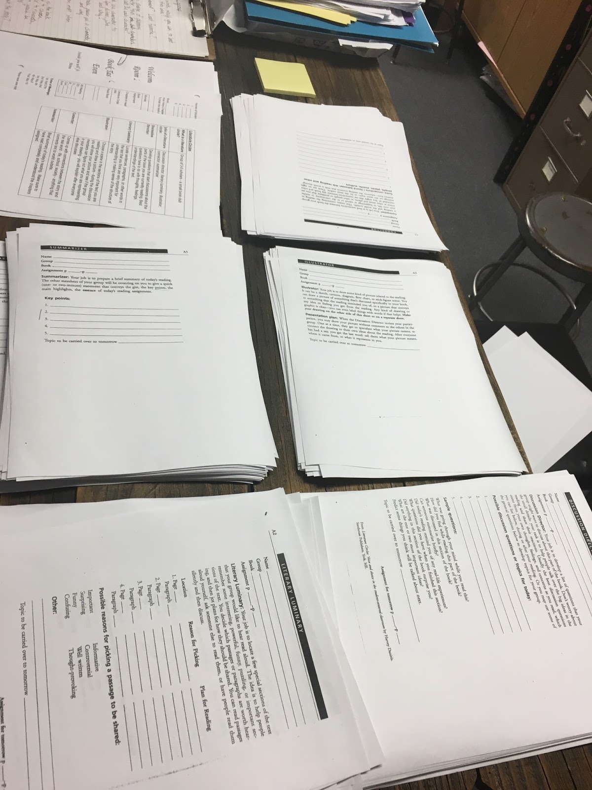 What do I mean? I mean that I scaffold-ed the discussion meetings by providing worksheets which assigned each member of the group a particular job for the meeting and had them “prepare” by completing the tasks on the sheet.